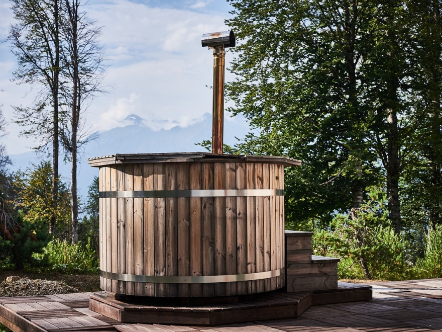 Дома оборудованы традиционной сауной или японской баней «офуро», которую называют «горячей бочкой».