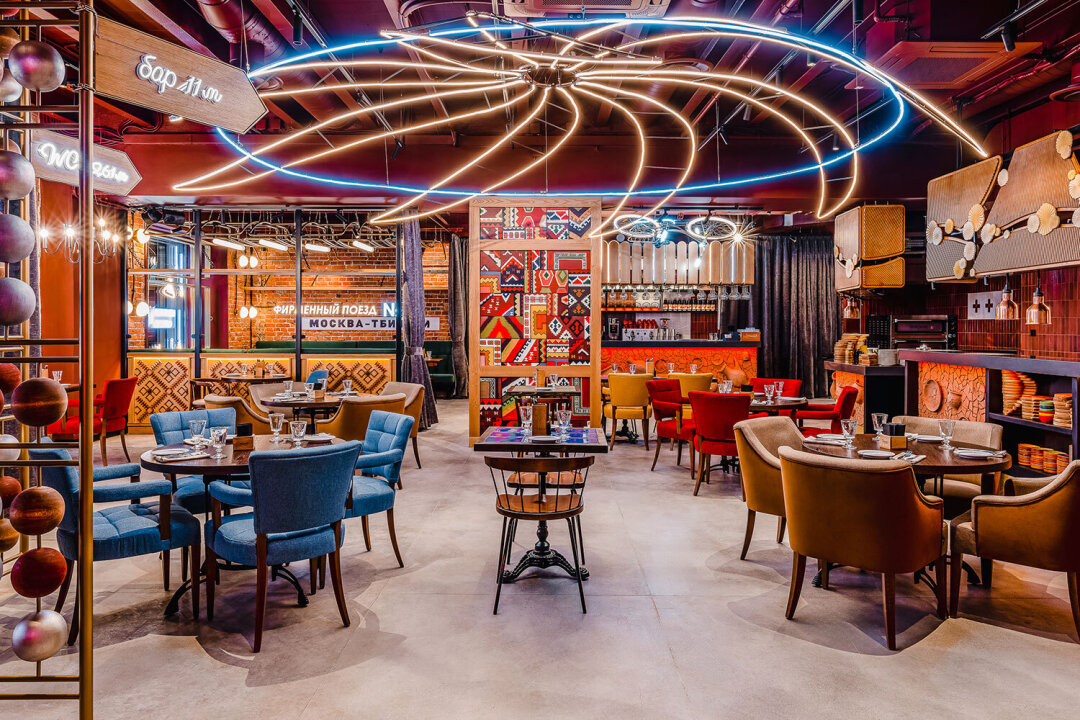 Ренессанс грузинской кухни в формате бистро. Яркий неон с национальными акцентами и эклектикой в интерьере отправляет гостей в современный Тбилиси. Меню, к слову, тут с картинками. Хинкали с крабом или курицей в соусе томкха, хачапури с горгонзолой и грушей — лишь небольшая часть экспериментов для тех, кто не боится искать новые вкусы. Консерваторы могут не переживать — с классикой тут тоже полный порядок. Место идеально и для семейного обеда, и для обильного торжества.
