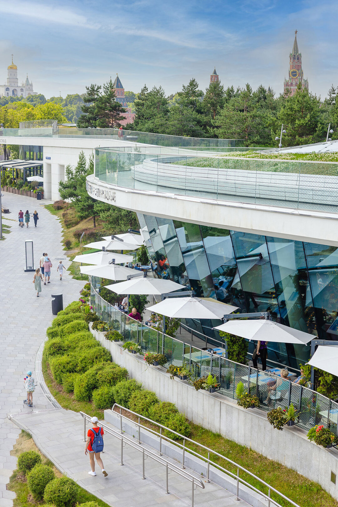 Такой вид на Кремль, Спасскую башню и золотые купола Архангельского собора сквозь лесную чащу парка «Зарядье» возможен только отсюда. Занять столик — большая удача, в ресторан всегда стоит очередь, привлеченная ценами: все блюда меню стоят 600 рублей. Карпаччо из говядины, сашими из аргентинской креветки и спагетти неро с кальмарами, традиционное хачапури по-аджарски, культовый BBQ-бургер и хрустящий фиш-н-чипс — щедрые порции подходят для семейных и дружеских застолий, а фиксированная цена дает возможность контролировать бюджет.