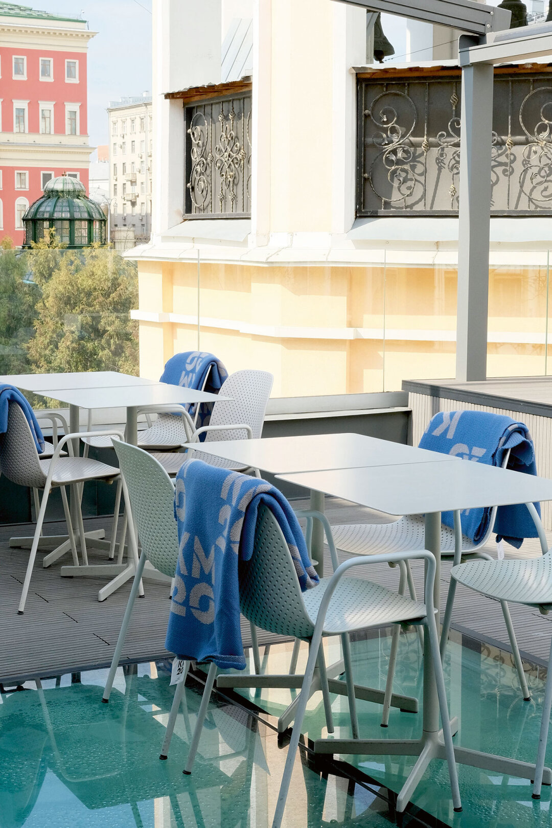 Ресторан занимает третий этаж одного из важнейших концепт-сторов России, который придумала и создала бизнесвумен и модница Ольга Карпуть. Когда в город приходит тепло, а поводов для встреч становится вдвое больше, на веранде с видом на Столешников переулок, Тверскую площадь, Большую Дмитровку и колокольню Храма Космы и Дамиана можно сидеть часами. Модная публика здесь чувствует себя как рыба в воде, заедая впечатления от коллекций неординарных дизайнеров блюдами из продуктов с собственной фермы ресторана.