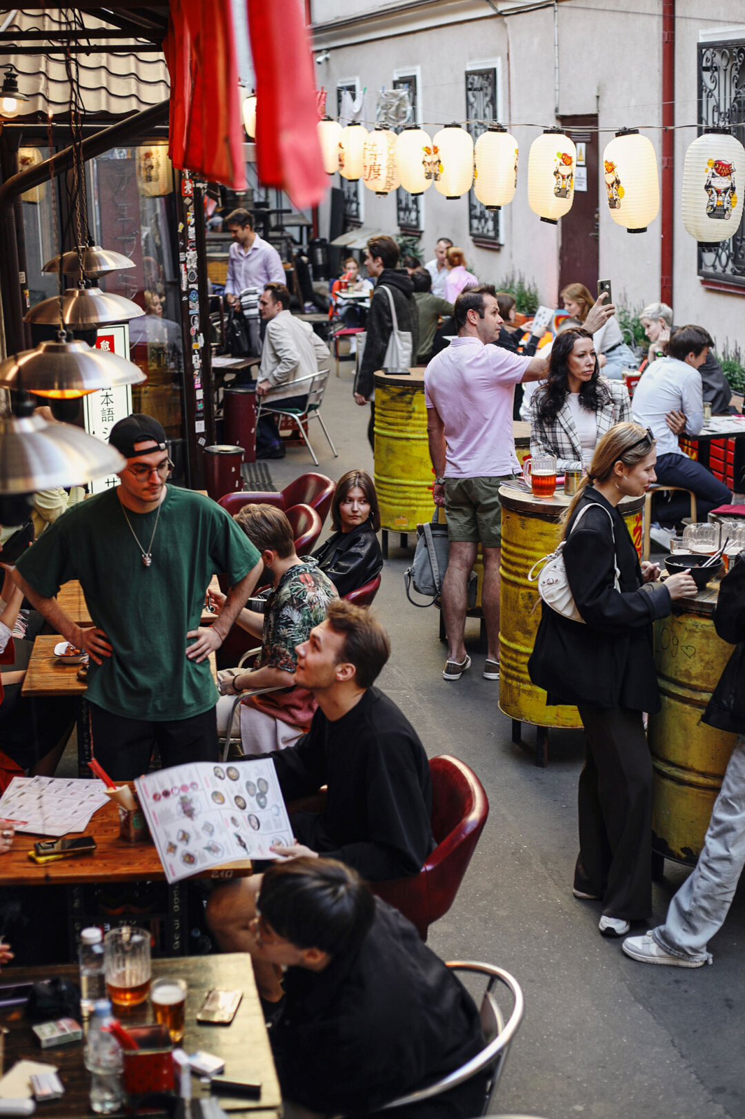 Японский татиноми-бар с эстетикой ночной токийской улочки летом выплескивается в тихий двор в самом центре города. Бумажные фонарики, столикибочки, яркие граффити — всё это делает локацию идеальной для съемок стрит-фэшн. Шеф Максим Кулешов всегда готов предложить идеальные аксессуары: кимчи рамен, кацу сандо, курицу карааге, а бар — яркие коктейли в банках. Серьезные люди приходят сюда изучать особенности саке, умэ, байцзю, соджу и других восточных напитков.
