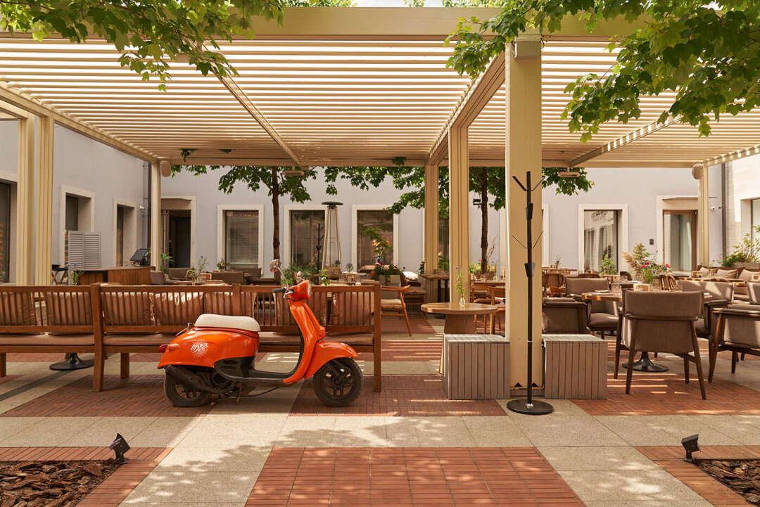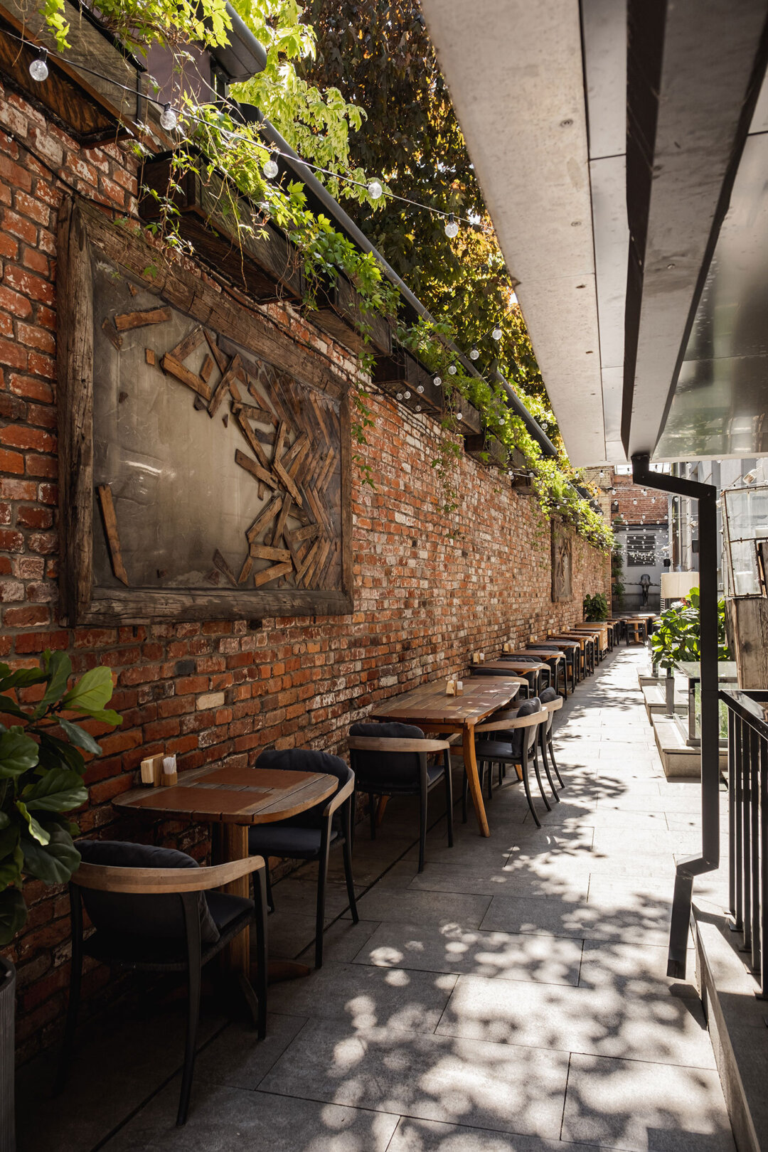 Веранда во внутреннем дворе бистро — образец того, как должен выглядеть современный московский дворик: в наполненном светом и живыми цветами пространстве можно скрыться от городской суеты и насладиться пением птиц. За кухню ресторана отвечает шеф Евгений Осокин. Воскресники с музыкантами, вечеринки с танцами до утра, ленивые завтраки утром, похмельные обеды с хот-догами и лазаньей болоньезе из печи, особые летние блюда от шефа — и всё это в паре метров от шумной Большой Никитской.