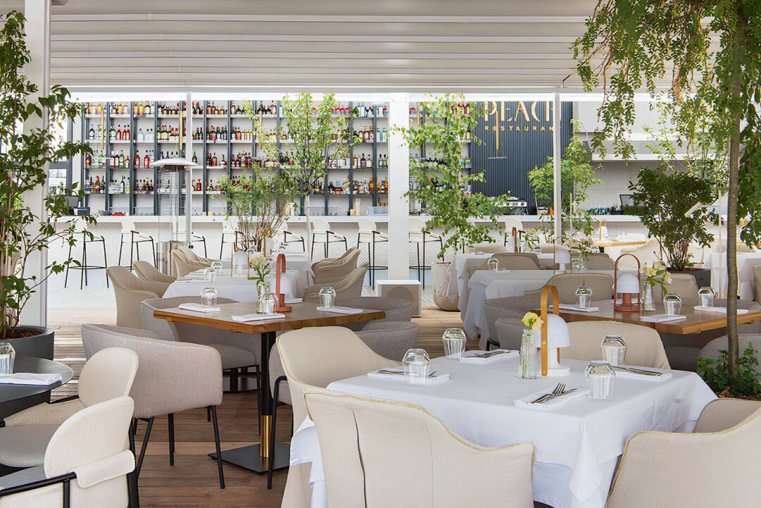 Панорамная терраса на крыше здания в квартале «Московский шелк» поделена на три тематические части — спокойная лаундж-зона, банкетный зал под крышей и основная зона, где в рамках летнего фестиваля каждый четверг проходят концерты. В этом году в ресторане выступят Баста, Григорий Лепс, Алексей Чумаков, а откроет сезон Эмин Агаларов. Хиты ресторана, среди которых мини-тако с крабом и персиком, стейк «Россини» и осетрина на гриле, бренд-шеф Peach Кирилл Бергер обогатил летним меню, которое доступно только на открытом воздухе.