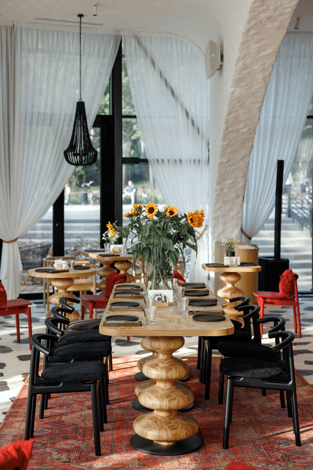 Ресторан авторской русской кухни в парке «Покровское-Стрешнево» выдержан в слегка лубочном стиле с расписными столешницами и колосьями пшеницы на потолке, но для ресторана в парке это выглядит органично. Упор в меню — на блюда, приготовленные на костре и в печи: печеный картофель с щучьей икрой, чизкейк из печки. Разумеется, есть пельмени и блины, а на входе стоит внушительный самовар. По всему парку разбросаны киоски-филиалы, где можно купить хороший кофе, интересный чай и всевозможные вкусные плюшки.