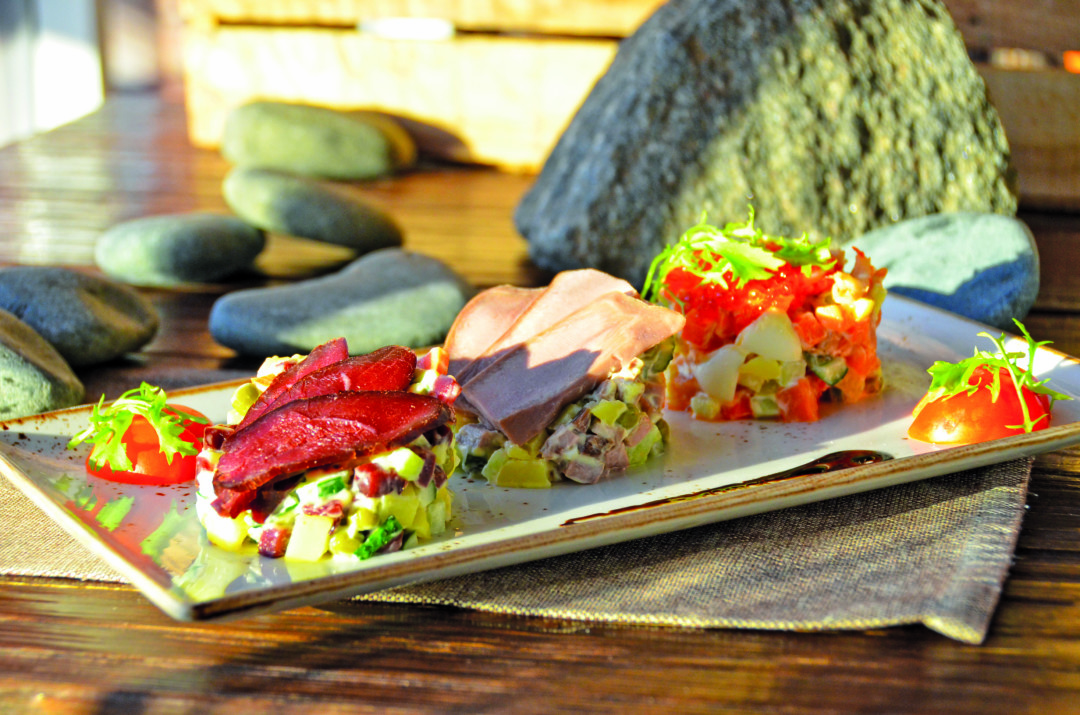 Где живет Дед Мороз, доподлинно неизвестно, но точно где-то на севере, а значит, питается он чем-то похожим на тройной «Оливье» из ресторана «Экспедиция». Традиционную основу новогоднего салата шеф-повар Андрей Лодыгин дополнил региональными вкусами Заполярья, и получился настоящий комбоудар по вкусовым рецепторам. В одной подаче уживаются «Оливье» со слабосоленой неркой, красной икрой и нежными раковыми шейками, вариант с деликатесным отварным языком северного оленя и оригинальная версия с олениной домашнего копчения. Почувствовать вкус севера и начать готовиться к празднику – идеальный вариант начала декабря!