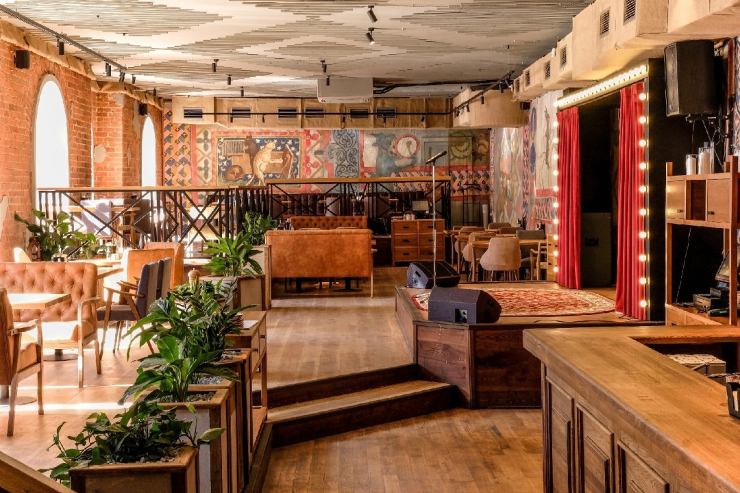 Душевный ресторан с родной кухней и неисчерпаемой темой ностальгии по прошлому. Знакомое каждому меню прекрасно подходит для семейных встреч: тут и шашлыки, и закуски, и десерты, как в детстве. Подкрепляют общее впечатление рисунки на стенах из книги с любимыми сказками, огоньки сцены, как в Доме культуры, куда мама водила в кружок танцев. Стирается ощущение времени и открывается «портал» в светлое и доброе прошлое.