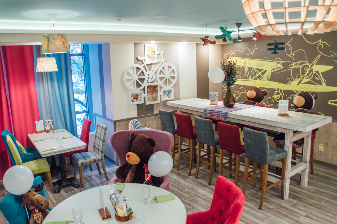 Дизайнерский проект с изысканным интерьером, эксклюзивным меню от шеф-повара и атмосферой комфорта и уюта. Для детей здесь есть детская комната, где можно поиграть в видеоприставку, посмотреть мультфильмы или заняться творчеством с аниматорами и профессиональными нянями.