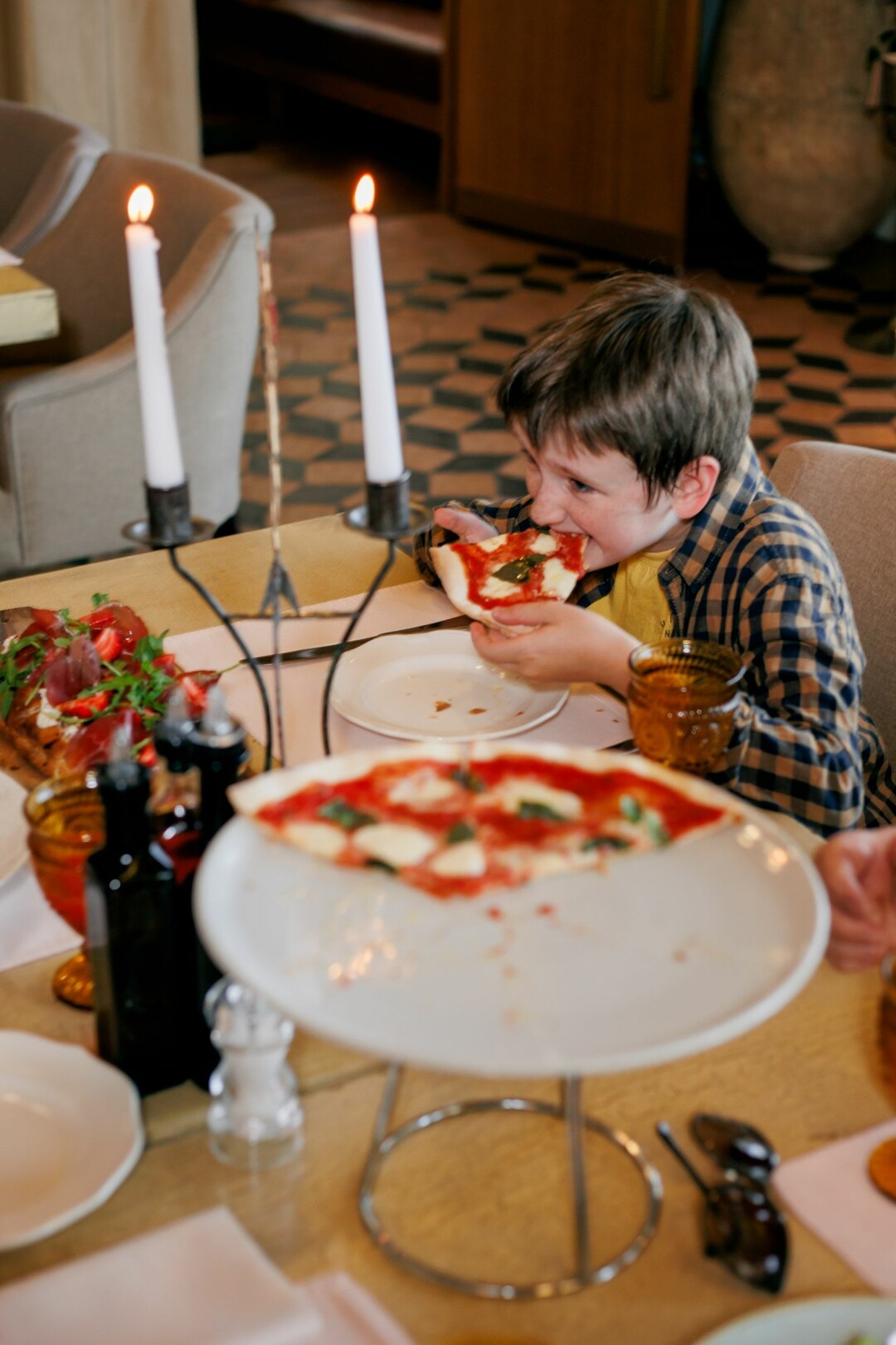 На особый случай, когда хочется качественной Италии. Торжественная нарядная атмосфера и блюда на любой вкус. Сыры «оттуда», пармская ветчина с дыней, нежный осьминог в салате, зелёные сицилийские оливки под белое или розе. Для мужчин сочный стриплойн, для старшего поколения лосось по-сардински или цыпленок с запеченным картофелем и томатным соусом. Для мамы - классическая паста, в честь праздника можно.