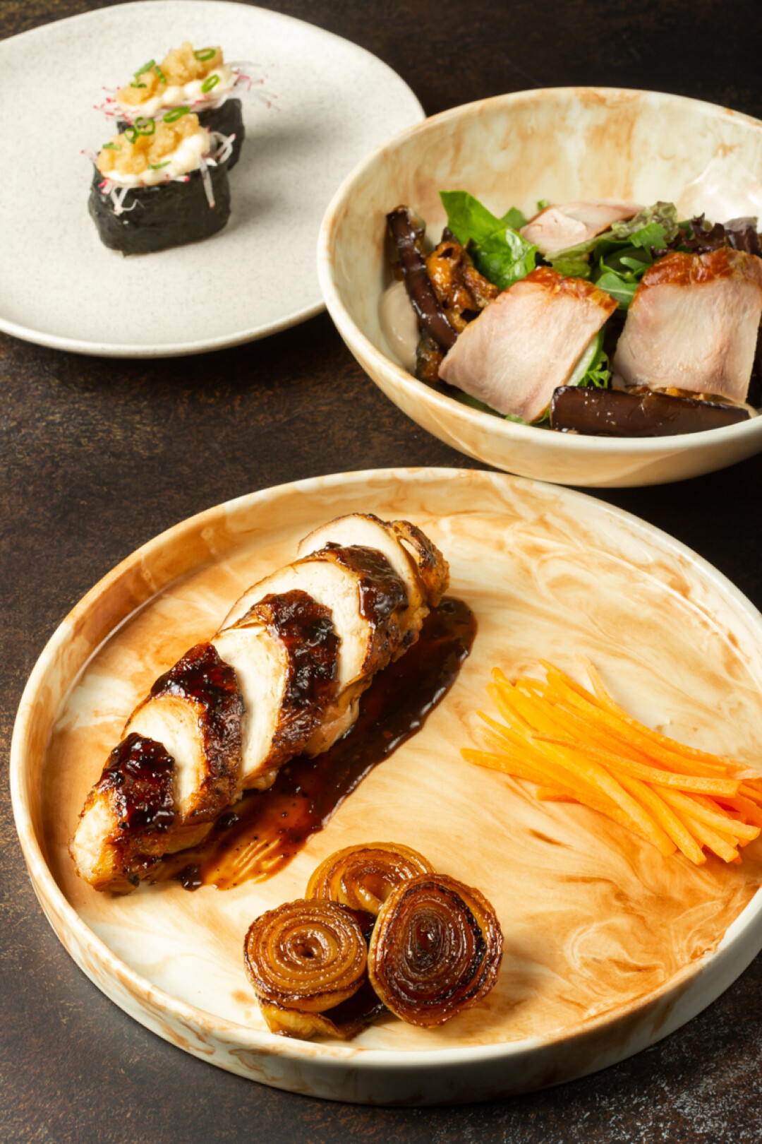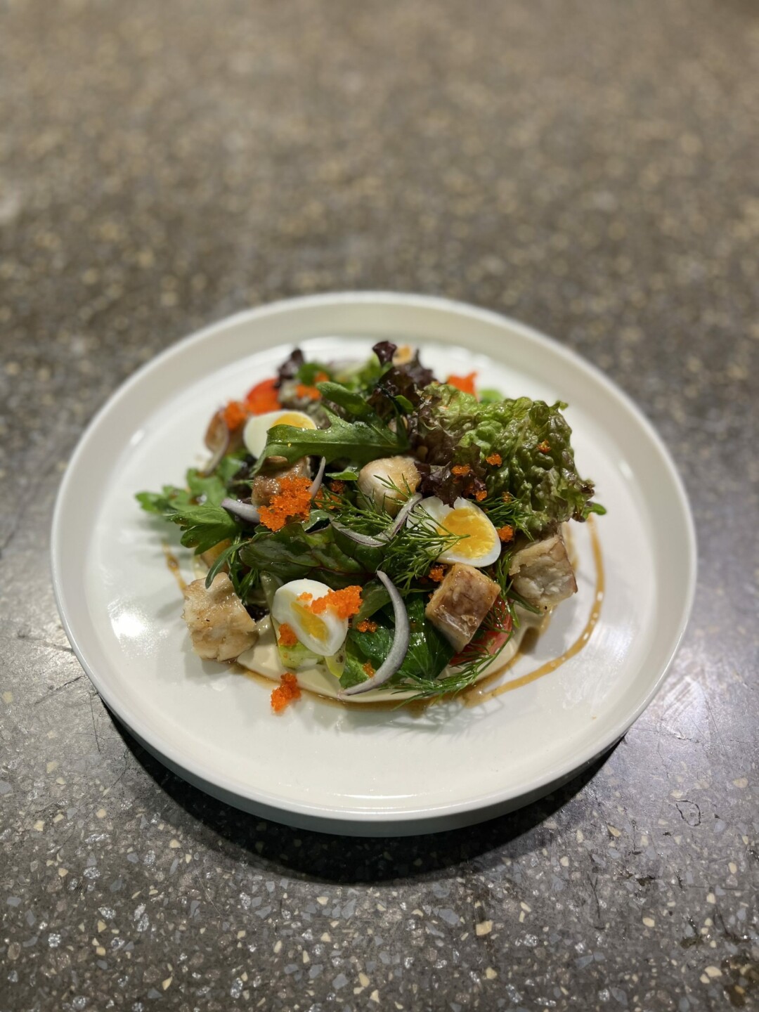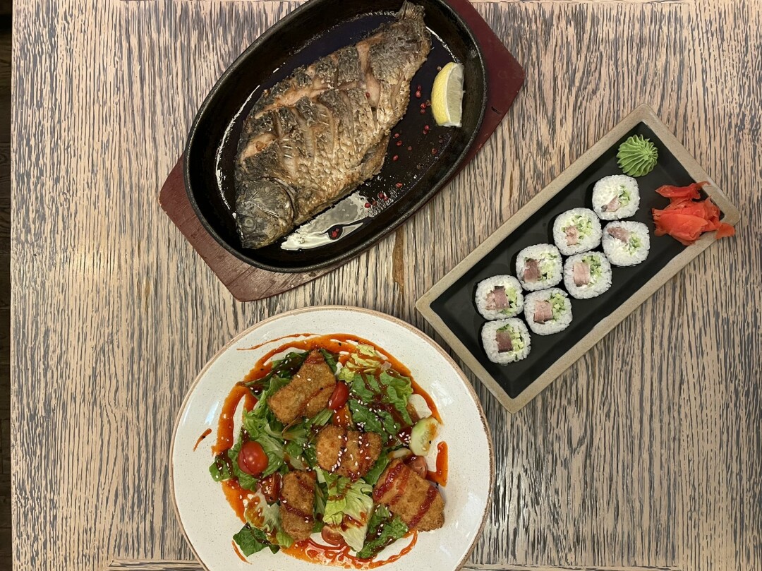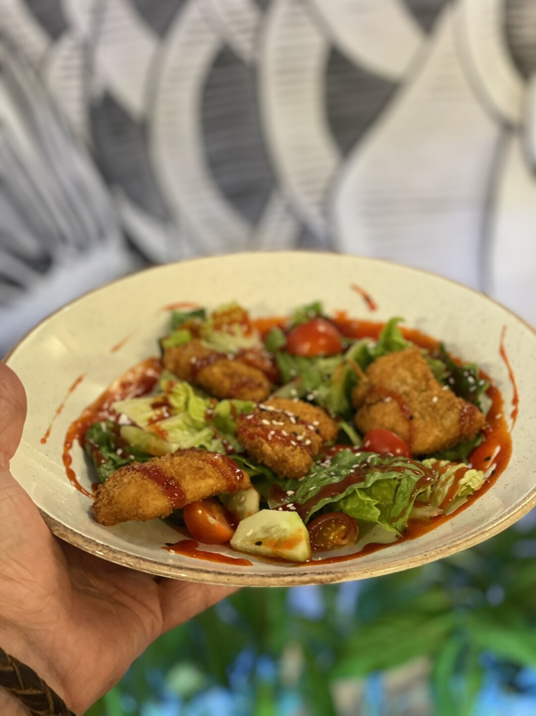 - Салат с волжским судаком «Панко» и сеульским соусом.