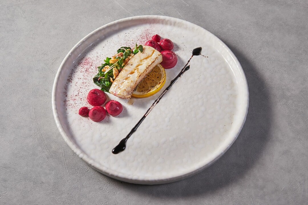 - Судак со шпинатом и кремом из свеклы с лимоном