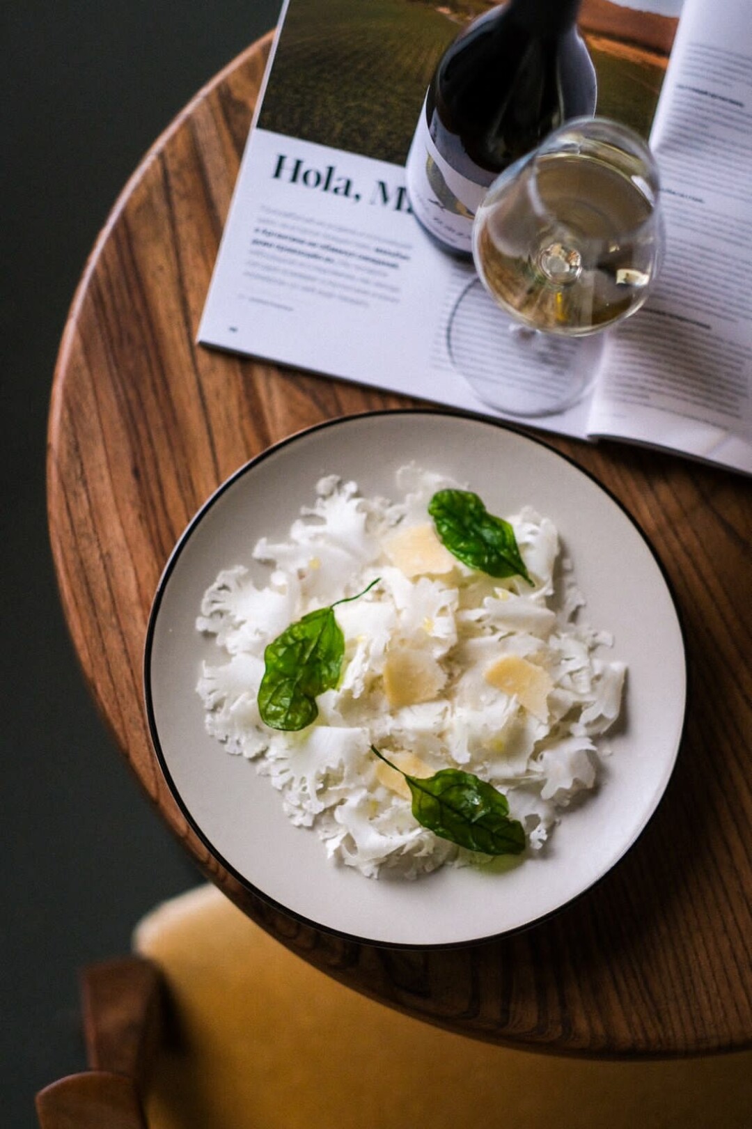 Пока одни ходят в Vins за яркими эновпечатлениями, мы отправляемся туда за свежим взглядом на овощные блюда. Фаворит редакции – карпаччо из цветной капусты. Нарядное и кружевное, это блюдо как выход невесты в конце модного показа – яркий акцент, с которым хочется жить долго и счастливо.