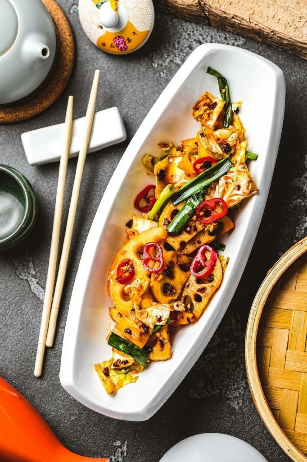 Медитировать в позе лотоса – приятно и полезно, а есть острый салат с корнем лотоса – еще и очень вкусно. По крайней мере, если речь идет о салате «Будда» в «Трех апельсинах». Еще один аргумент в пользу этого блюда – двойной удар умами от заправки, состоящей из молодого соевого и соуса из черных бобов.