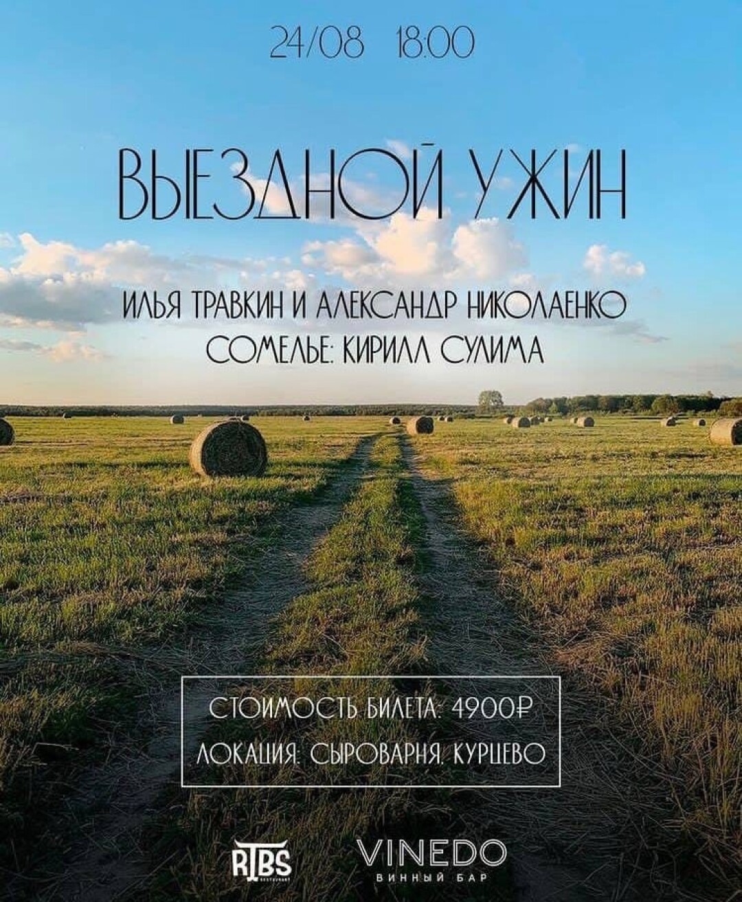 Сразу два шефа Илья Травкин из Ribs и Александр Николаенко из Vinedo, а также сомелье Кирилл Сулима в сыроварне «Курцево». Так далеко эта компания еще не забиралась, и цена за билет более чем демократичная для подобных мероприятий.