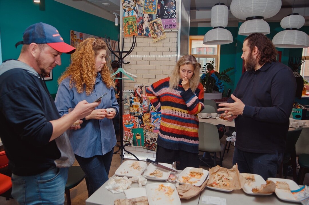 А дальше оказалось, что шаурма как вино: в аромате одно, во вкусе часто совсем другое. Например, идеальная со всех сторон Shaurma City огорошила всех чесночным соусом. А «Шашлык-Машлык» оказался с готовым то ли карри, то ли еще каким-то агрессивным соусом, который пришелся не по вкусу всем экспертам.