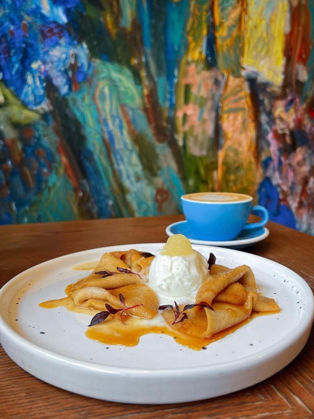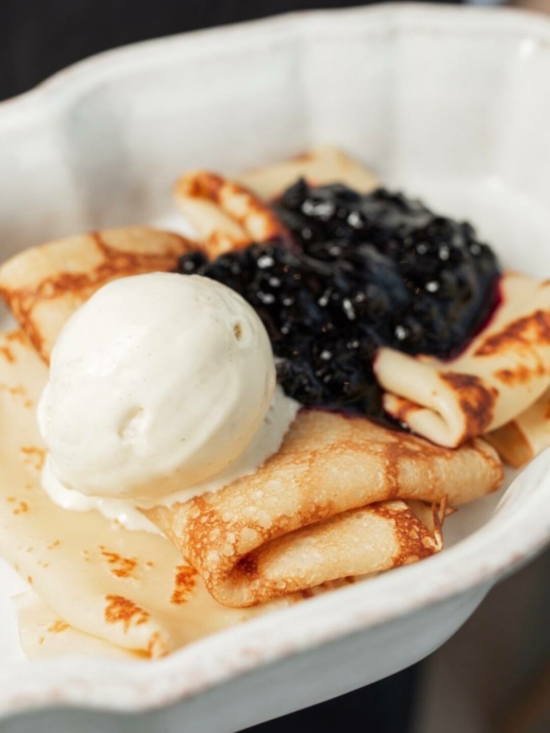 С 20 февраля в меню: блины с соусом болоньезе, с лососем и творожным сыром, с фермерскими творогом и сметаной, с черничным вареньем и ванильным джелато.