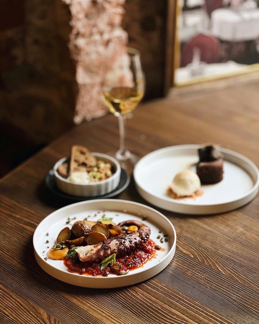 Шеф-повар Илья Травкин подготовил новые вкусы, которые можно пробовать с этой недели. В меню появились: утиное филе с яблочным татином и соусом копченая клубника; севиче из дорадо с тартаром из манго; лосось мисо, корень селдерея и икра морского ежа; филе говядины, фуа-гра, картофель и малиновый жу; чебуреки с говяжьими ребрами; конфеты «Три кухни мира».