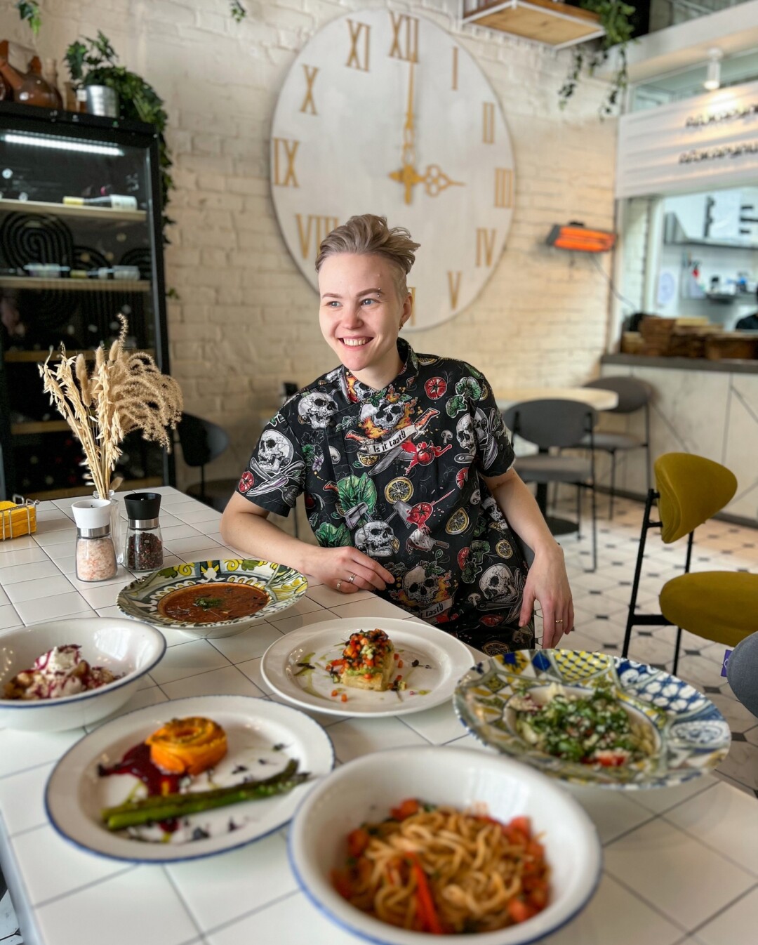 Впервые в меню растительное мясо и сметана на основе кокосового молока. Авокадо гриль, розовые томаты с соусом чимичурри, крем-суп из брокколи и цукини, жареный картофель с белыми грибами, голубцы с соусом из белых грибов и сметаной, вареники с картофелем и белыми грибами.