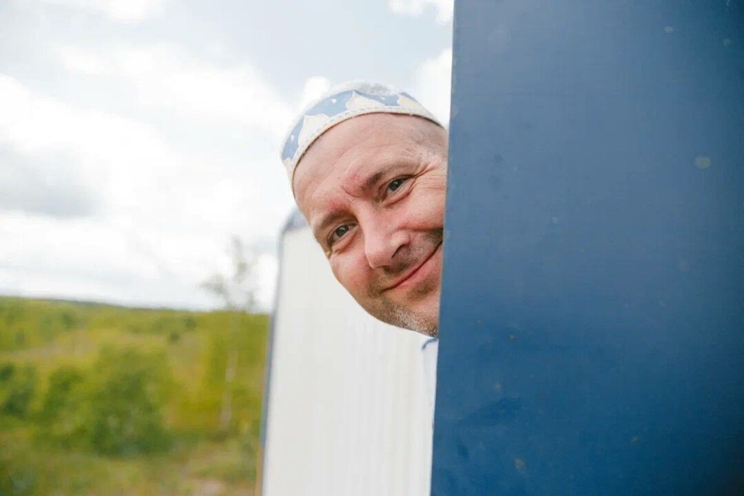 На 20 человек в городке готовят один повар с помощницей. Кухня с мойкой, плиткой и холодильниками располагается в одной половине передвижного вагончика, а столовая – в другой. Работники едят в две смены.