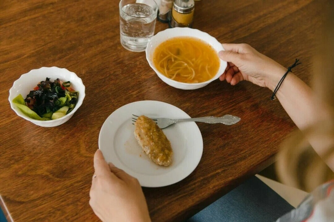 В меню домашняя еда. Есть овощные и мясные салаты, бульоны, борщи, овощные супы. Все свежайшее, молочка приходит из Нижегородской области, а мясо закупают у марийцев, поддерживают локальных производителей и создают большое количество рабочих мест.
