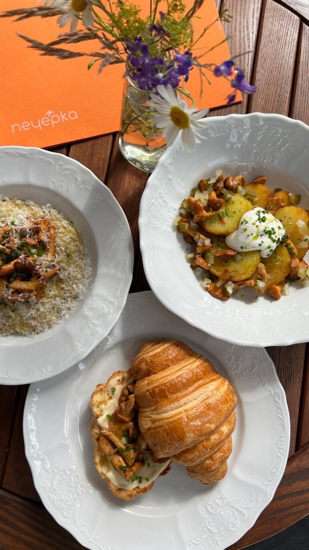 Ресторан открыл сезон лисичек и уже начал готовить специальные сезонные блюда с ними. Нужно бежать пробовать жареный картофель с лисичками, сметаной и солеными огурцами; круассан с лисичками и картофельным кремом; орзо с лисичками и трюфельным маслом.