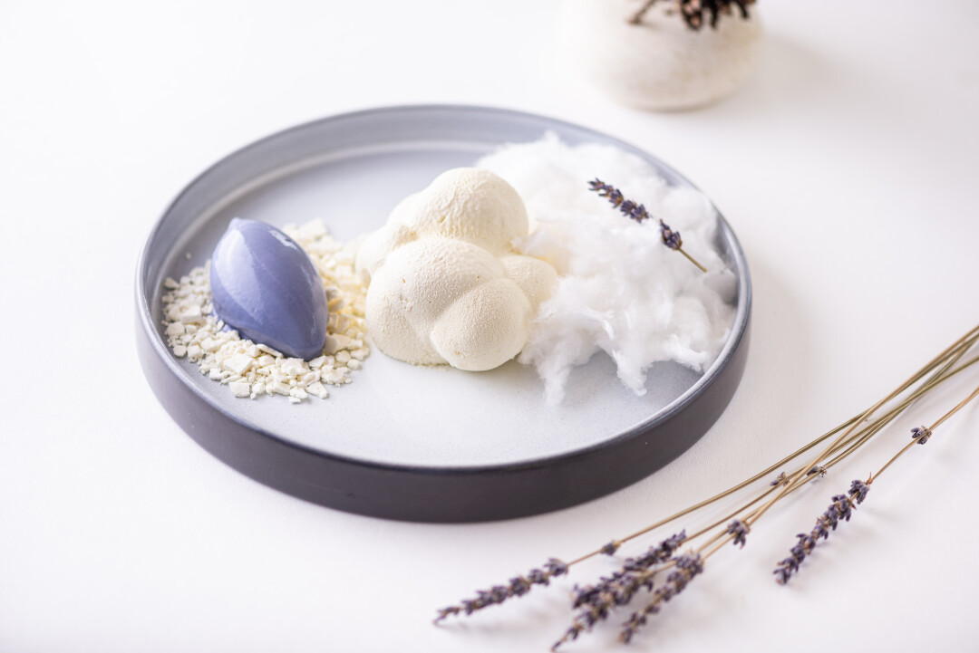 Воздушный десерт вошел в тройку победителей конкурса «SU-шеф» от Аэрофлота. Мороженое с голубой матчей и лавандой, лимонное конфи и хрустящее творожное печенье – и в памяти возникает образ Бри Ларсон в лаконичном атласном наряде от Prada на премии «Золотой глобус – 2024». «Лавандовое облако» – нет, не на красной ковровой дорожке, а в ресторане с видом на Волгу и в бортовом меню бизнес-класса – к радости всех поклонников пастельных оттенков.