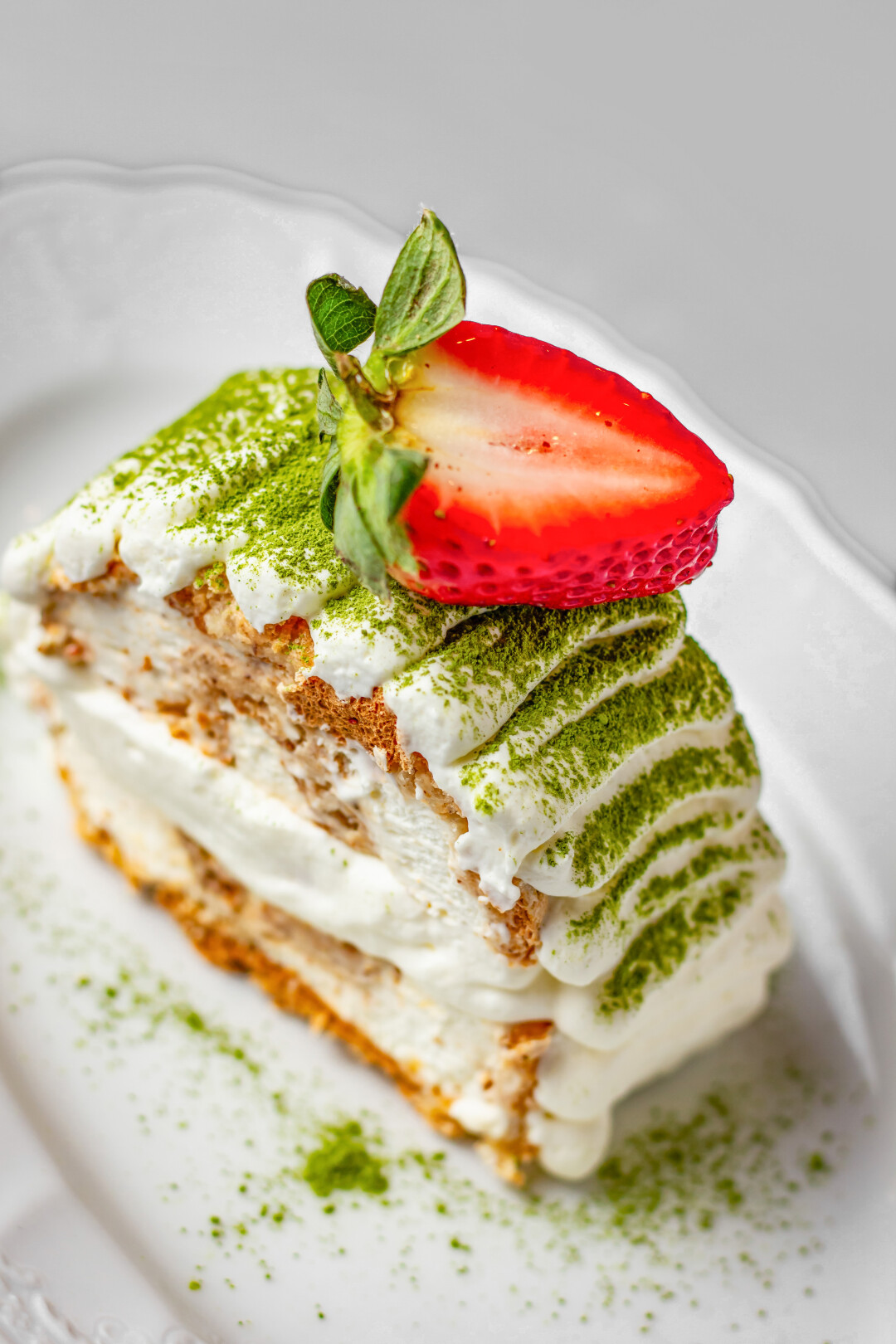 Тонкий белковый корж с кремом из маскарпоне припудрен зеленой матчей и украшен спелой клубникой – чем не цветовое сочетание Gucci в гастрономической интерпретации? Эксперименты с травянистыми оттенками возвращаются на мировые подиумы, а мы смело заказываем этот десерт в Dodici Seafood, не заботясь о лишних калориях – бдительность усыпляют полезная матча и свежие ягоды.