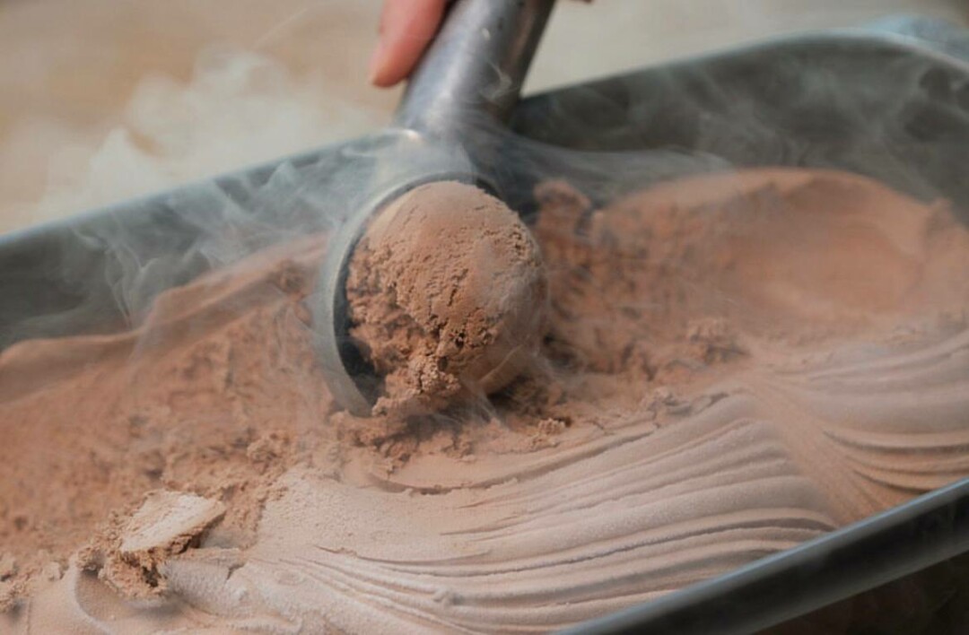 Поговаривают, что этому мороженому даже в морозилке жарко, поэтому временное расстояние между пикчей для инсты и употреблением по назначению должно быть минимальным. А готовят его и правда с добавлением азота, а еще бородинского хлеба, шоколада и квасного сусла – это очень много лета в одной порции.