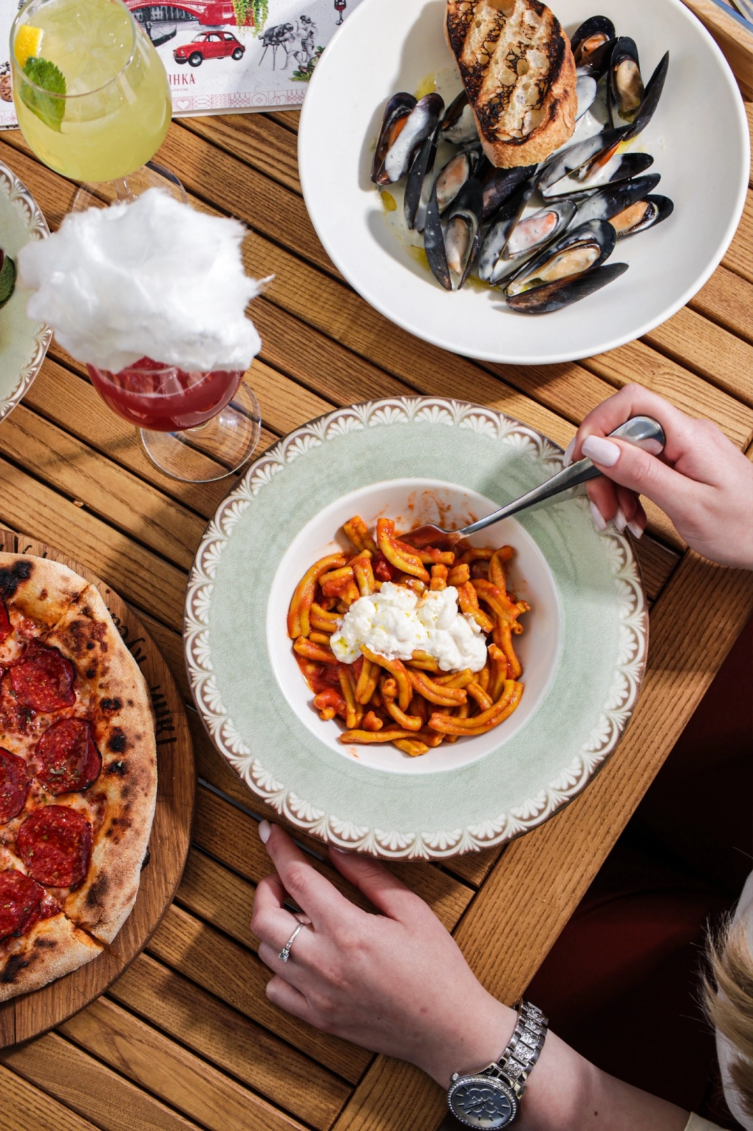 Настоящий vibe Italiano царствует в Brera. Орзо с гребешком отобедаем, а казаречче с соусом гаспачо и казончелли с кроликом прибережем к приятному разговору за ужином. И, кстати, сюда не только за пастой, но и на интерьер с подачей полюбоваться – они здесь отдельное искусство.