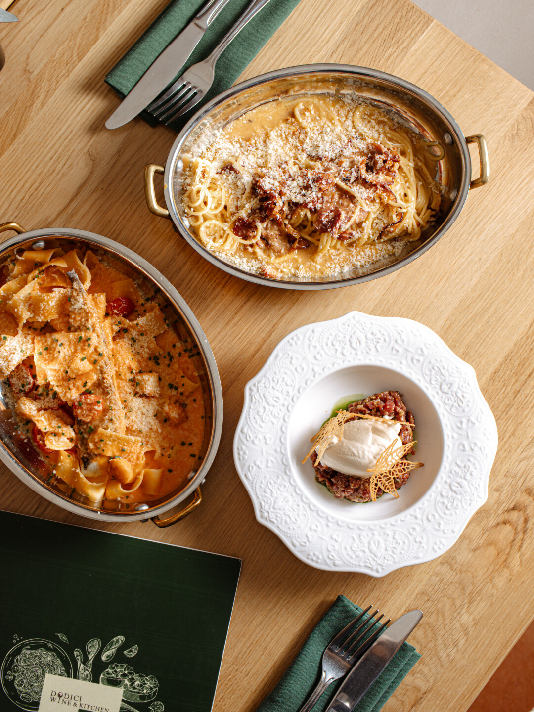 «Черный человек! Ты прескверный гость!» Поэт ржи и сенокоса, вестимо, просто не пробовал черных спагетти с запеченным лососем в Dodici Italy. Отправляемся в гости к самому итальянскому из всех итальянских заведений города на казаречче с трюфельным тартаром и лингвини вонголе (в сливочно-винном соусе).