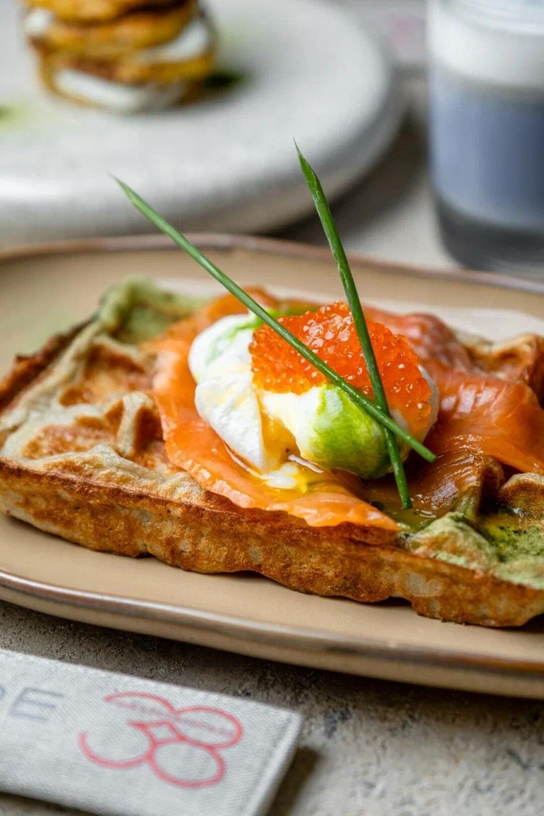Рыба как начало дня. Завтрак «Кусто» как учебник красивой жизни: яйцо с красной икрой, сыр из козьего молока, узбекские томаты, лосось, зеленые оливки и заварное кольцо (1350). Также советуем драник с патэ, морское фуа-гра и щучью икру (750), бенедикт с телятиной, перцами и муссом качо-э-пепе (750).