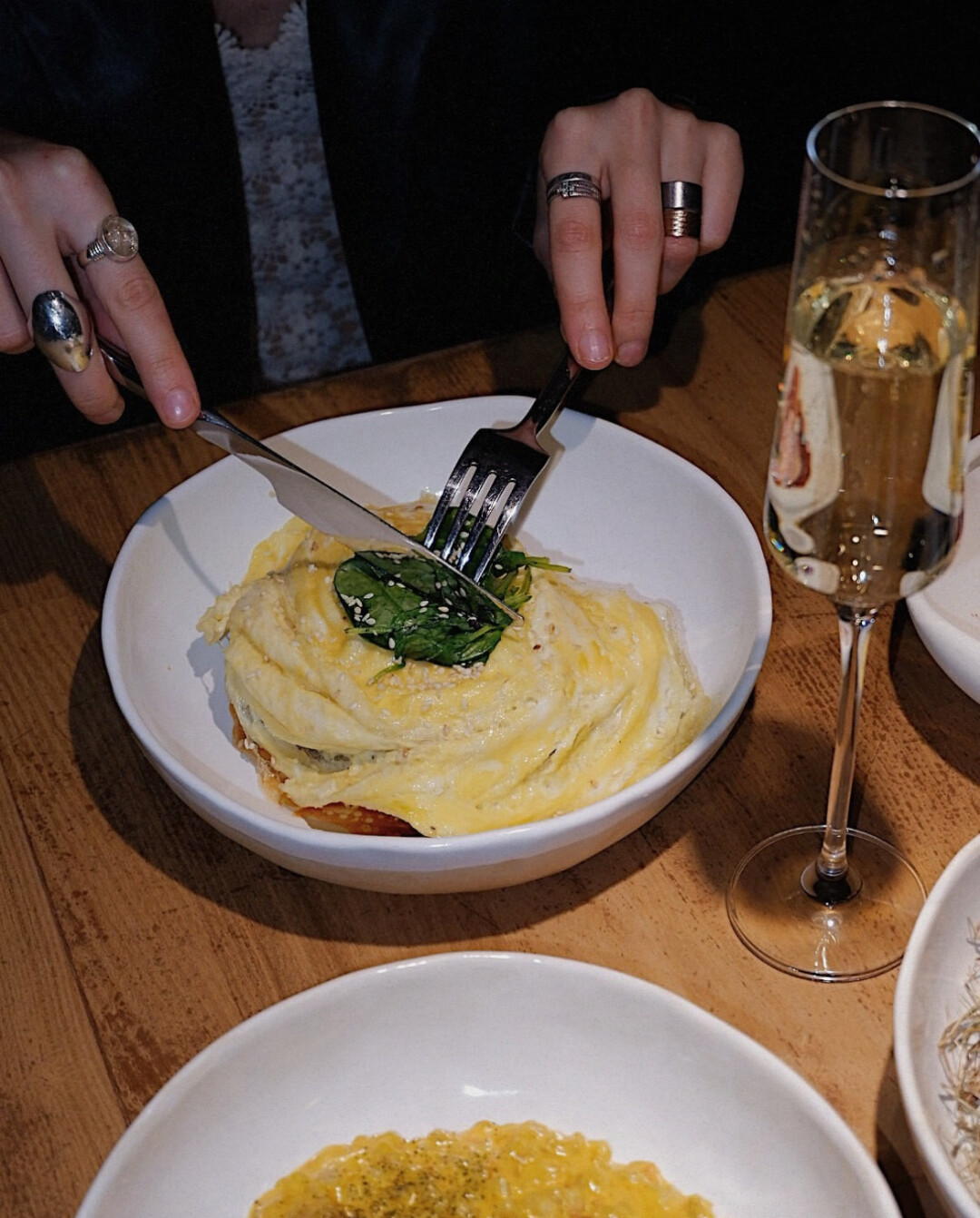 Советуем присмотреться к рисовой каше с тыквой и меренгой (550), сырному суфле с говяжьими щеками, смородиной и демиглясом (750) и имбирному рафу (300).