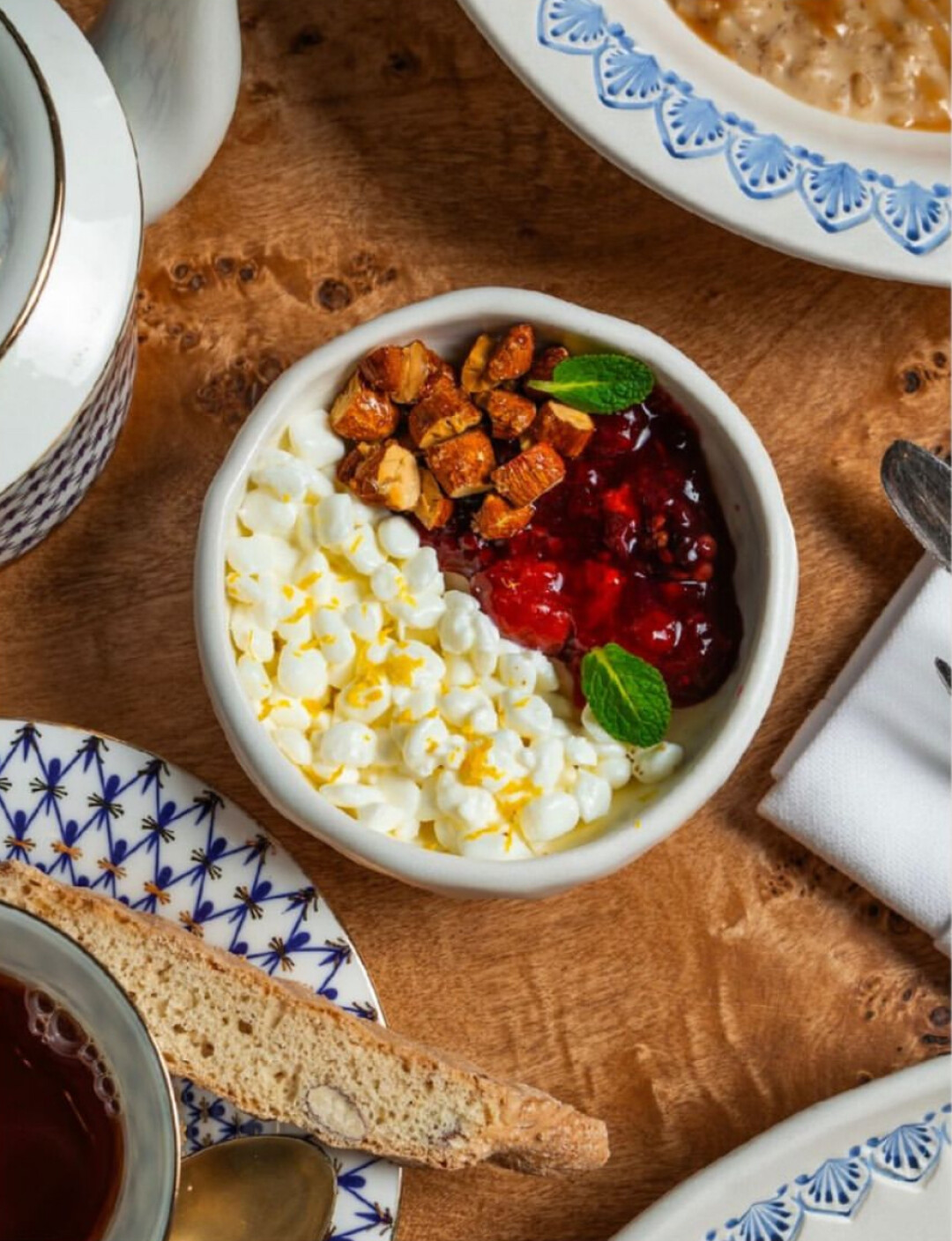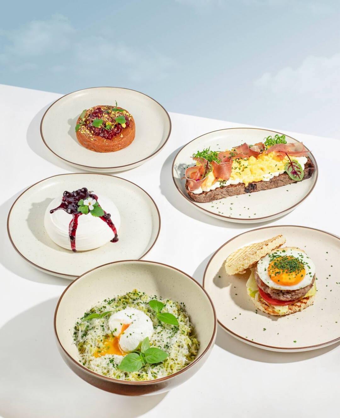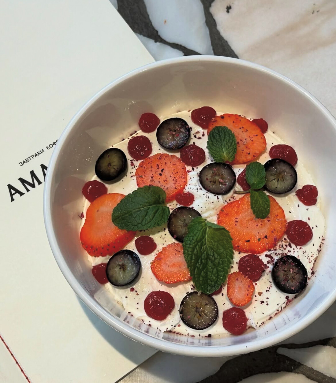 Один из самых красивых завтраков. Пробуйте сэндвич-пиццу с мортаделлой и страчателлой (550), воздушный творог с ягодным конфи и миндалем (350), тост со скрэмблом и трюфельным бри (550).