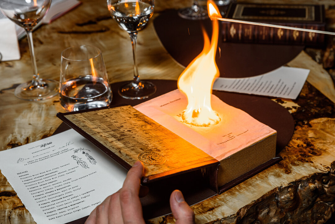 Над меню трудился тандем шеф-повара и сомелье, чтобы соблюсти принцип фудпейринга: все блюда изначально задуманы для союза (созданного на небесах!) с напитками (в карте – более трех сотен названий, а к ним и легкие закуски, и полноценный ужин). Гармония на столе и приятный туман в голове располагают к тесному общению – рецепт, веками проверенный певцами любви, от Овидия до Пушкина.