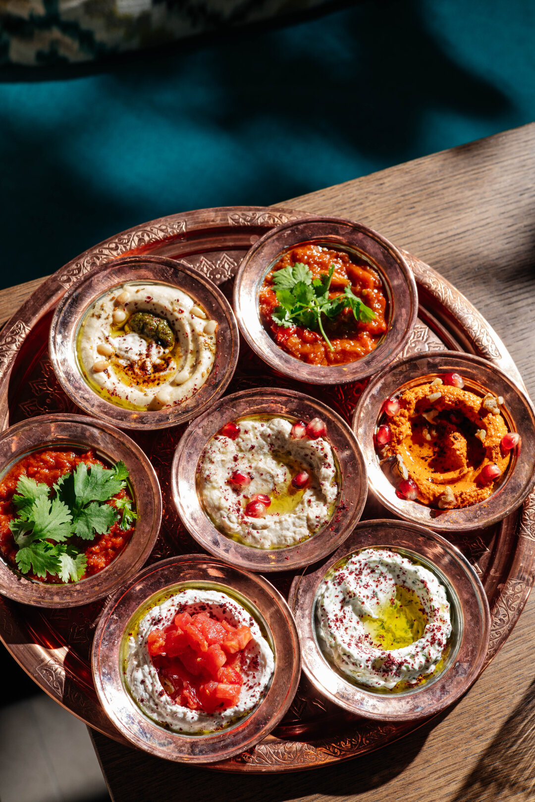 Сибас на углях и бараньи деликатесы, которые готовят на гриле, легендарный турецкий салат фатуш с нежными кальмарами и чипсами из манакиша, табуле и специи, доставленные со стамбульского Гранд-базара. Начать знакомство с кухней шеф рекомендует с ассорти мезе, чтобы хумус, мухамара, матбуха, лабне и хариса стали не просто словами, а вкусами-порталами в тысячелетнюю историю Ближнего Востока.