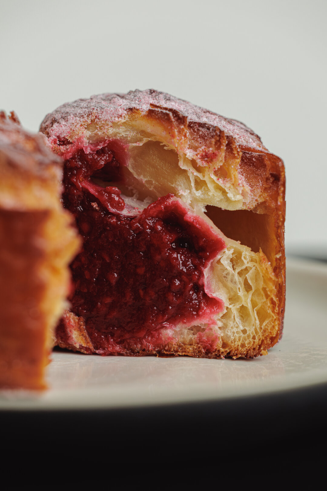«Очень малиновая булочка» от шеф-кондитера Рушаны Кухтиной (Salut! Specialty Coffee) – эталон слоеной выпечки с ягодами, в которой малина звучит в два тембра: густой джем внутри и воздушная пудра сверху. Создана для прогулок по Нижнему в паре с любимым (человеком или кофе).