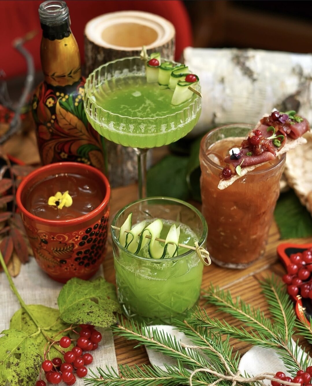 Шеф-повар ресторана русской кухни Владимир Ванеев переквалифицировался в бартендера и для нового меню смешал сразу три коктейля: «Кровавую Марусю» на хренодере, крепкий «Культурный код» на меде с вареньем из одуванчиков и «Ивана да Марью» в двух вариациях, с игристым или лимонной настойкой. Про основное меню шеф тоже не забыл. Сначала пробуем щи с бычьими хвостами, щавелем и пареной репой и ветлужские пельмени с говядиной, копченой свиной грудинкой и лесными грибами, а после телячий язык по-нижегородски и голубец в цукини с волжским сомом и раковыми шейками.