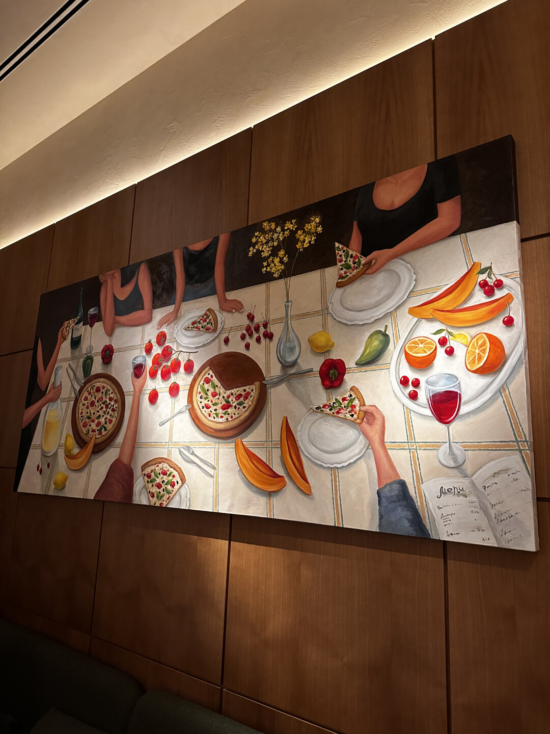 Отблеск пламени печи, живые цветы, вино по бокалам и римская пицца. Сюда красивые юные девы приходят за свой счет поболтать с подружками. А дяденьки стыдливо просачиваются подслушивать эти разговоры.