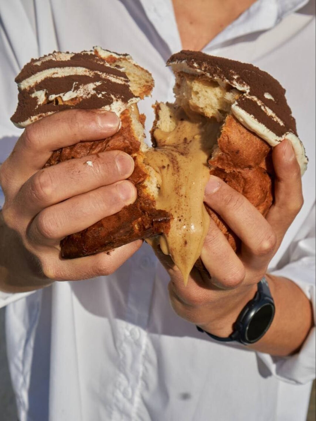 Тут тестим все, размер позволяет. К классическому куличу с сахарной глазурью добавили мини-версии с начинками: фисташка-малина и молочный шоколад.