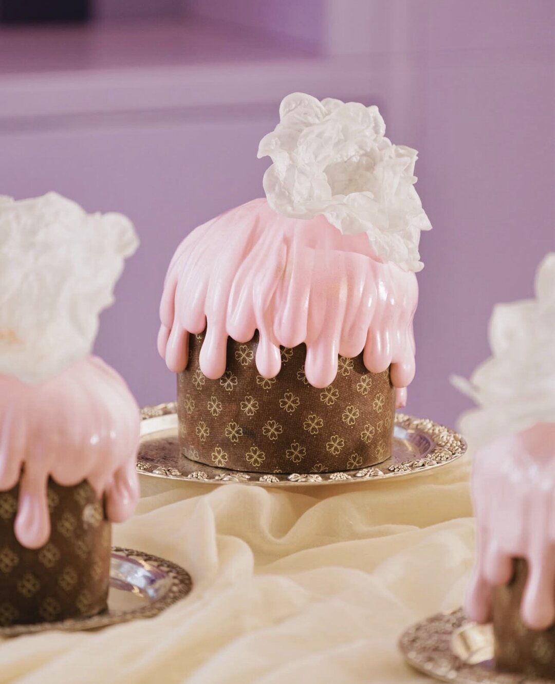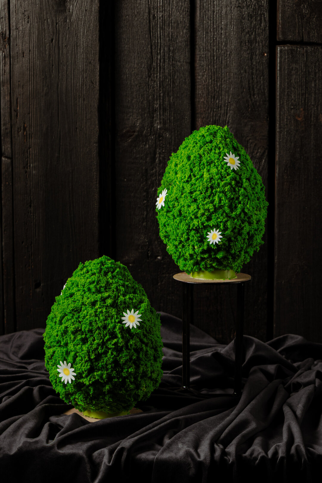 Здесь кулич буквально инсталляция, которую подают на металлических ножках. Корпус из белого шоколада, внутри панеттоне с карамельным кремом, а сам десерт скрывается за бисквитным мхом. Заказать можно до 9 апреля.