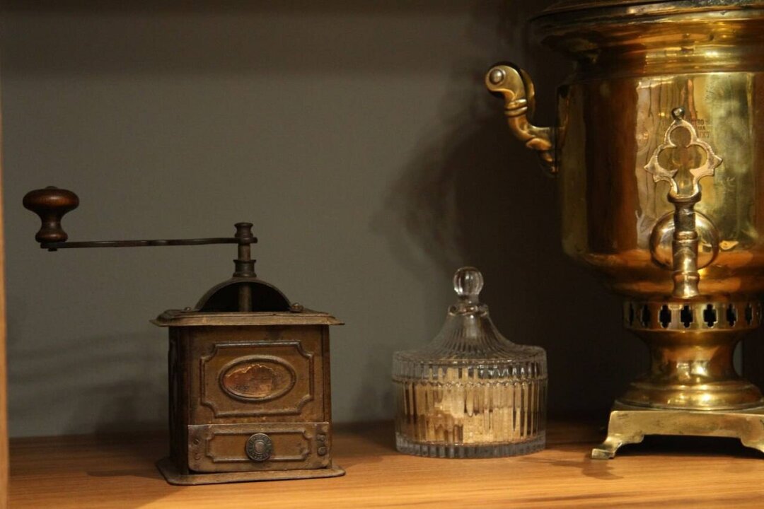 Кофе тогда обжаривали на сковородках или в печи, мололи на ручной мельнице и варили в специальных кофейниках-самоварах – металлических цилиндрах на ножках с краником внизу и емкостями для воды и кофе. Их делали из латуни, а нагревали на углях или спиртовке. Один из таких есть и в новой кофейне.