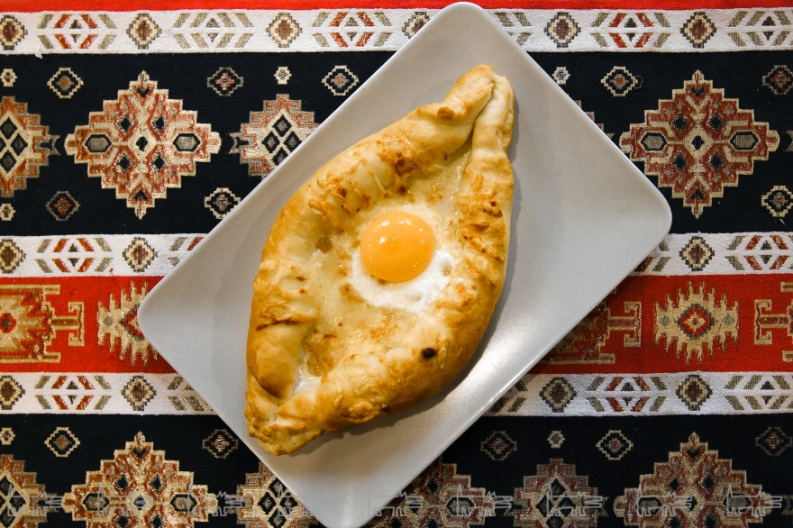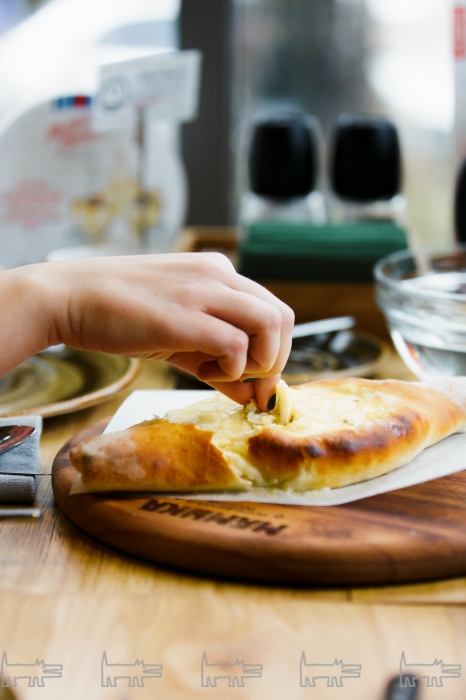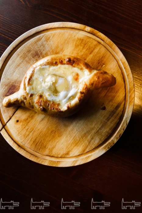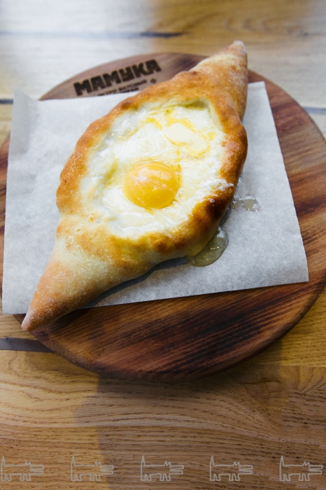 Внешний вид шикарный – красивая лодочка изящной формы, румяное тесто, яркий желток по центру. Сами хачапури большущие. Просто потрясающее тесто – мягкое, воздушное, сверху чуть хрустящее. Кажется, оно даже немного слоеное. Что касается сыра, я лично не очень люблю соленое, поэтому мне этот вариант пришелся по вкусу – очень сбалансированно получилось. Единственное замечание – по классике, белок должен схватиться, а жидким остаться только желток. Здесь же было немного и жидкого белка. Но этим почему-то грешат многие заведения. То ли боятся передержать и запечь желток, то ли у них свое прочтение классики. В остальном претензий нет – мне было вкусно»