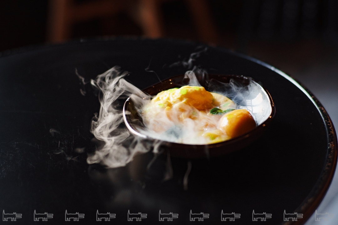 Кредо бренд-шефа гастробара Ивана Кузнецова – «кухня – это химия, как и вся наша жизнь», поэтому здесь постоянно проходят всевозможные эксперименты, причем основные их принципы заключаются в том, чтобы свести к минимуму отходную часть и по максимуму использовать локальные продукты. Зато нет никаких ограничений в способах приготовления, сочетаниях и текстурах. Определить состав некоторых блюд по внешнему виду – отдельный, но увлекательный квест. Например, холодец. Здесь он теплый и представлен в виде наггетсов. Бульон варится на основе бычьих хвостов, без традиционного желатина, зато со сливочным маслом. Затем полученную массу панируют в сухарях. Получается блюдо с насыщенным и ярким мясным вкусом и с очень удобной, хоть и непривычной в данном контексте, формой. По признанию шефа, можно было бы сделать и котлету из тех же хвостов, но это банально, а люди с детства любят есть руками.