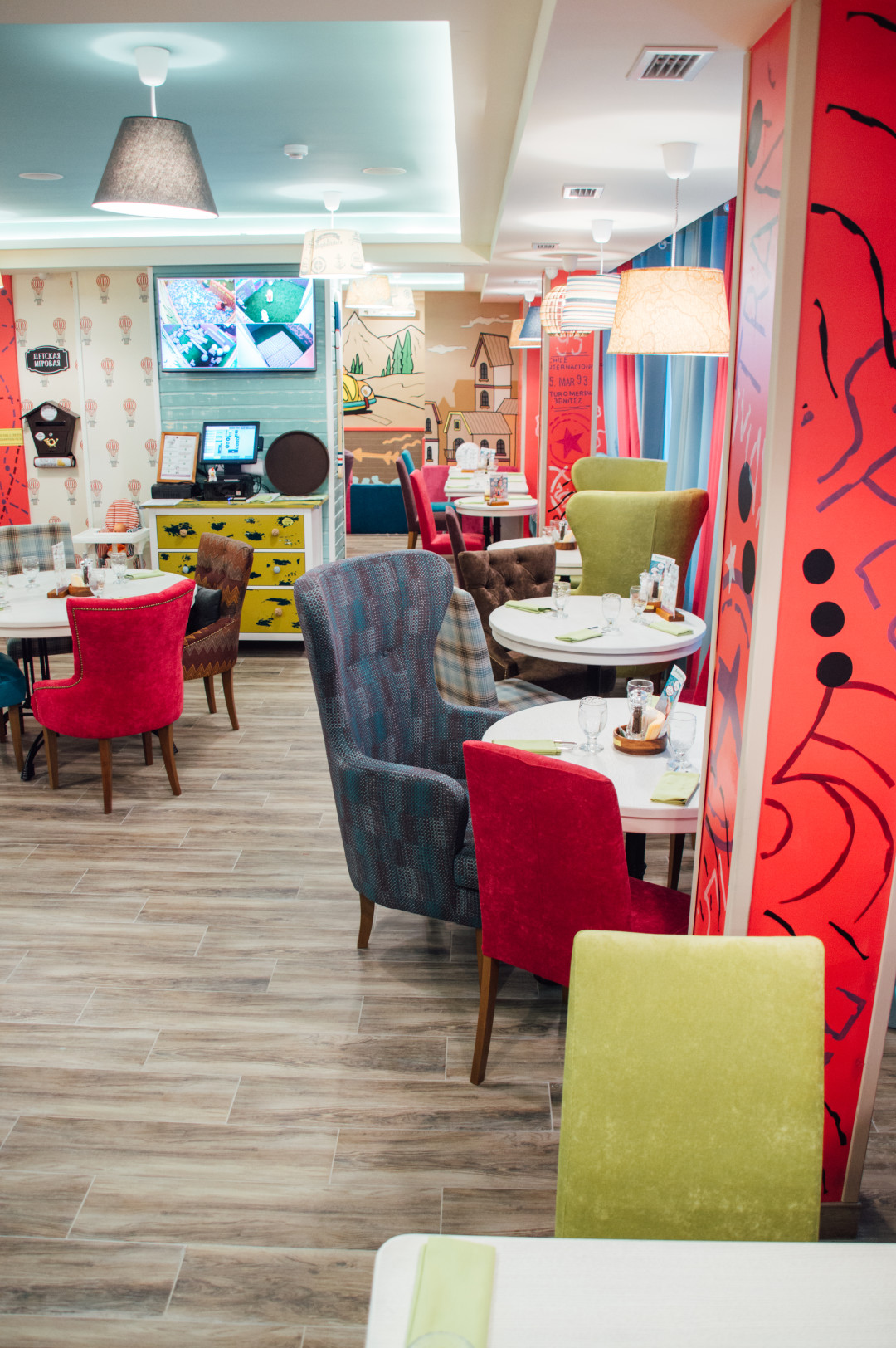 Само кафе делится на зоны: кофейня, кулинарная академия, детская игровая комната, отдельная комната для кормления и пеленания, зал для праздников, летняя веранда. Так каждый может побыть в той локации, которую выберет. Кто-то здесь проводит деловую беседу, а кто-то – в буквальном смысле ходит на ушах. При этом никто ни на кого косо не посмотрит.