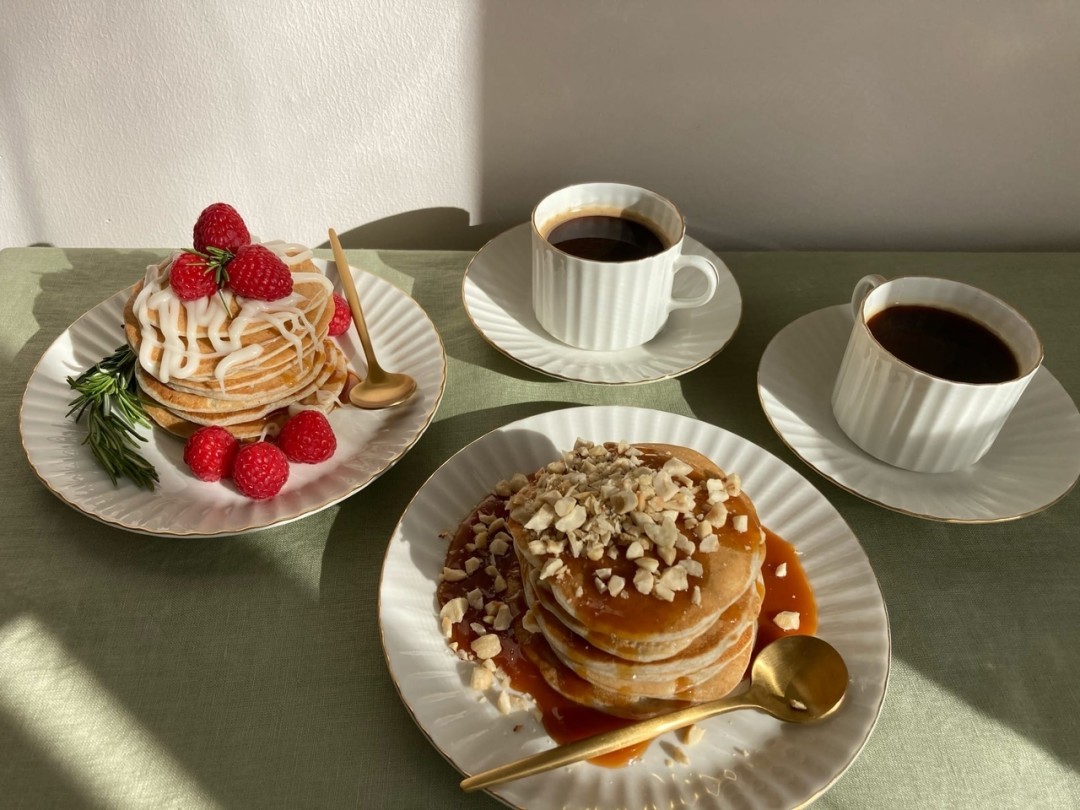 Банановые оладьи с кокосовой карамелью, малиной и фундуком: собираем все лучшее сразу, чтобы было вкусно и красиво.