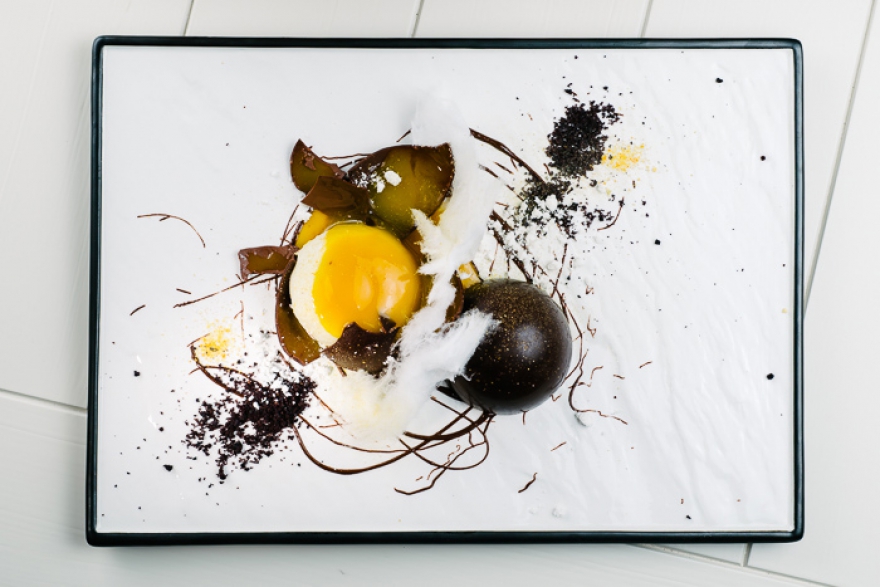Повара Петербурга поддержали свои блюда буквально, проектируя собственные тарелки. Чемпион по арт-подаче шеф Антон Исаков объясняет, зачем карамелизовать морские камни и делать подставки из воздушных шаров.