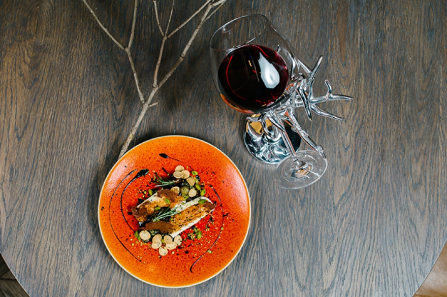 Сейчас я воплощаю в жизнь несколько идей. Для барбарисовой панакоты делаю тарелку из леденцов: если их вымочить в сиропе, они хорошо склеиваются. Для строганины из омуля подготавливаю камни. Есть такая техника антигриль: продукт жарится при температуре –50 °С до ледяной корочки. Я воспроизведу этот эффект с сухим льдом. Замораживаешь в нем камни и на секунду опускаешь в лимонный сок — происходит глазирование. Потом, пока рыбу будут есть, сок будет таять и придавать верный вкус. Уже изготавливают тарелки для суши моего дизайна. Это лодка, сточенная, как морской камень, к ней веслами крепятся палочки, а соус наливается в спасательный круг. Мой любимый проект из тех, что в разработке, — «Цезарь» с голубем. У нас же ресторан на крыше, эти птички повсюду. Жарить их нужно в зале, на раскаленном гравии, голуби ведь глотают эти камни для процесса пищеварения. Подавать на ветке, почки которой — из батона, пропаренного в бульоне из голубиных косточек. Плюс салатные листья и соус со вкусом сырка «Дружба». Конечно, каждый элемент хочется обыграть отдельно: плеснуть на гравий водки, чтобы горела, подпалить батон горелкой. Но слишком перекрученные подачи — нехорошо: логистически, для работы ресторана, это неправильно.