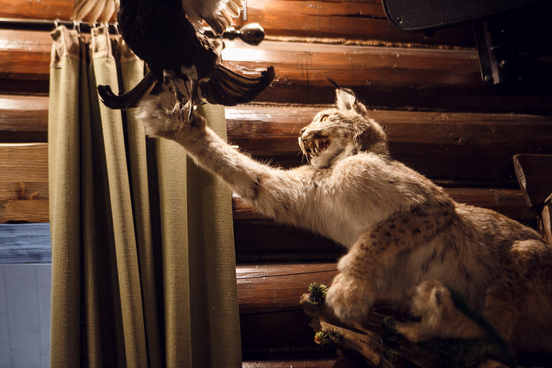 При входе в трактир «Патрон» гость попадает в атмосферу настоящей охотничьей хижины. Это простое и понятное место, в котором комфортно провести время с семьей, деловыми партнерами или друзьями. Нашей целью было передать дух русской охоты не только в блюдах, но и в интерьере. Поэтому на стенах можно увидеть настоящие охотничьи трофеи диких зверей и птиц.