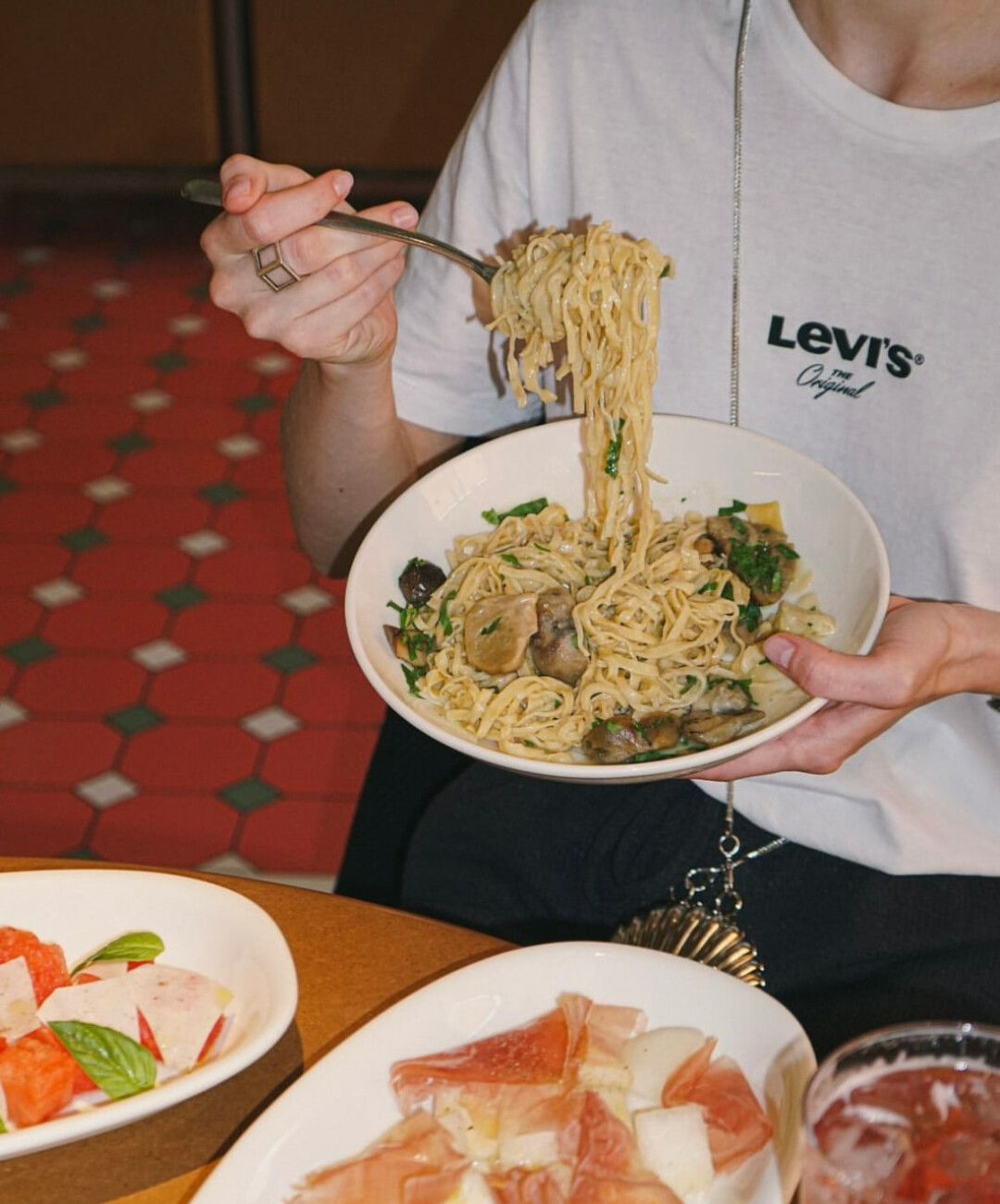 Понятно, что тут любят пасту, а также неспешные ужины и голодных гостей. Накормят пьемонтским тартаром из говядины, вителло тоннато, капрезе, напоят «Гарибальди» (у которого есть младший брат), «Олла Роса» и «Кузнечиком». А еще они бегали все лето, потому что спорт и паста показали превосходную совместимость. Дизайн минималистичен – ничто не должно отвлекать от главного.