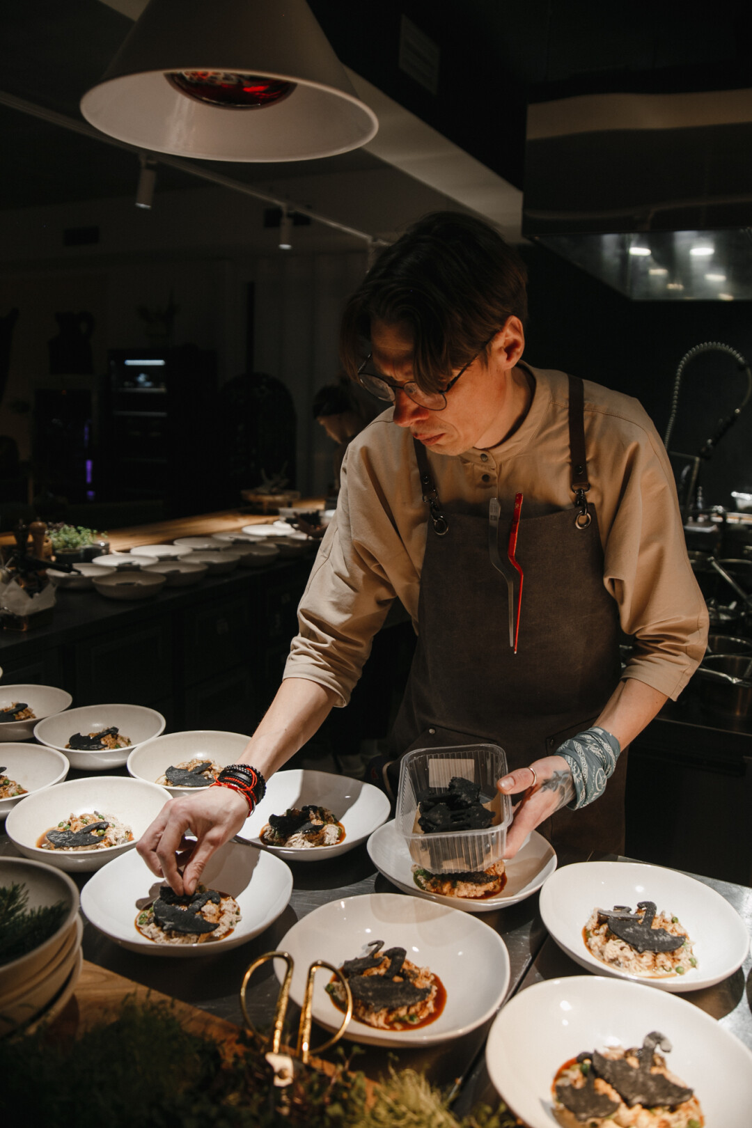 Александр Николенко не стесняясь заколлабил нижегородские продукты и проверенную временем кулинарию: 50 с лишним блюд книги рецептов 1898 года на столе. Филе камбалы в белом, томленый лось, жюльен из языка и кокиль из креветок и краба. Десертики тоже не только историческую ценность имеют: «Мильфей со свежими ягодами», «Трюфель», «Городецкий пряник». Запиваем все «Николаем II» или «Продажей Аляски».