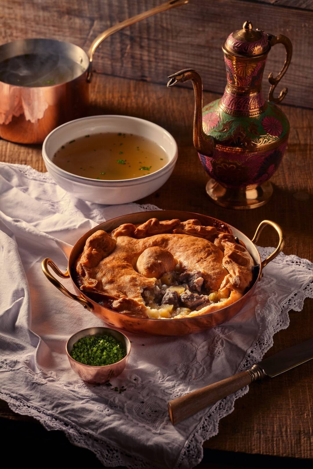 Отыскали старинные рецепты, переиначили под современность и подают теперь салат «охотничий с олениной», окрошку с ветчиной из утки и щеку теленка в мясном соусе. Не забыли про сказочную классику: «Каша из топора» – это полба с томленой говяжьей щекой, а «По щучьему велению» – пельмени из щуки. К самоварным заседаниям берем «Моховые горы», «Подосиновик» или «Березу» – услады очей и уст.